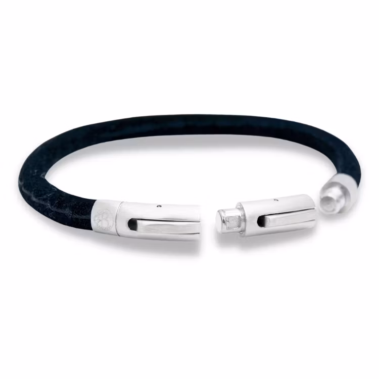 Since the bracelet is made of leather, we recommend avoiding contact with water. Take always off your bracelet when bathing or showering. Also, make it a habit to put on the leather bracelet after applying products like bodylotion, and sunscreen for example. This will help prolong the lifespan of your jewellery.