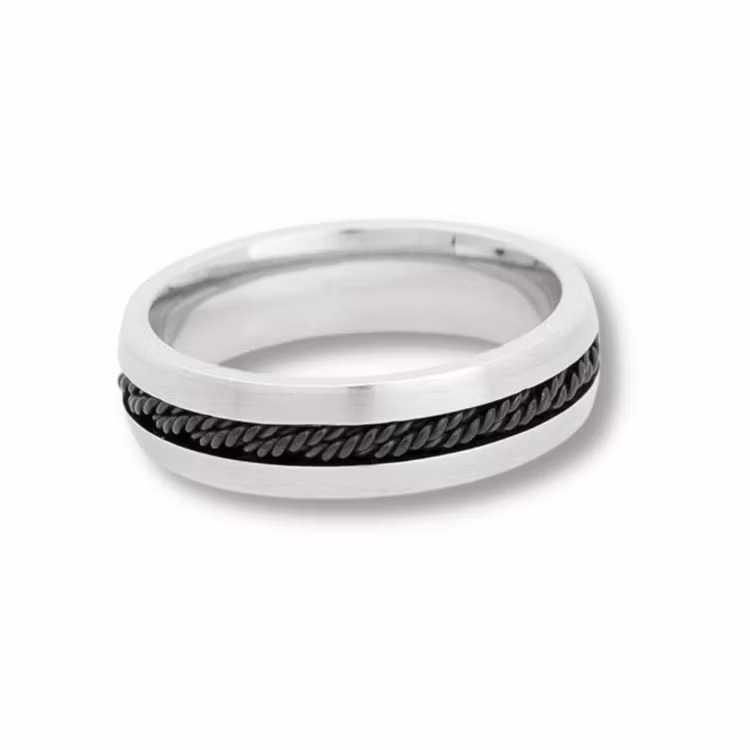 Stylish ring in stainless steel with a black chain as a detail. The perfect gift for the man who loves mens jewelry.