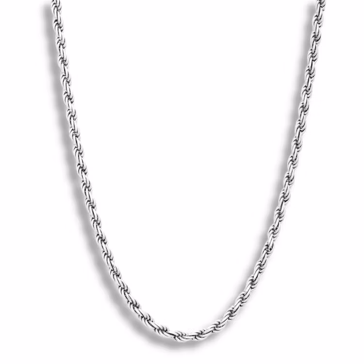 A twisted necklace resembling a rope made of thin threads. The Cordell chain is a classic chain that adds style to every outfit with its characteristic appearance. This Cordell chain differs from our previous model as it is not made of oxidized silver. This chain is therefore lighter, and the silver shines more brightly.