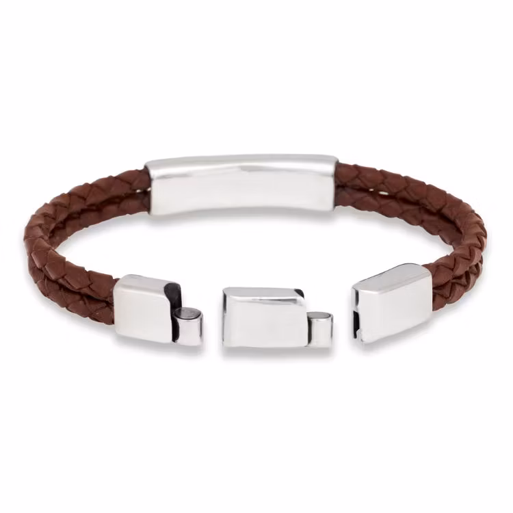 Ett brunt läderarmband som kombinerar robust elegans med tidlös design. Tillverkat av högkvalitativt brunt läder och kompletteras med detaljer i 925 sterling silver. Armbandet är den perfekta accessoaren för den moderna mannen. Välj mellan 19 cm och 21 cm.