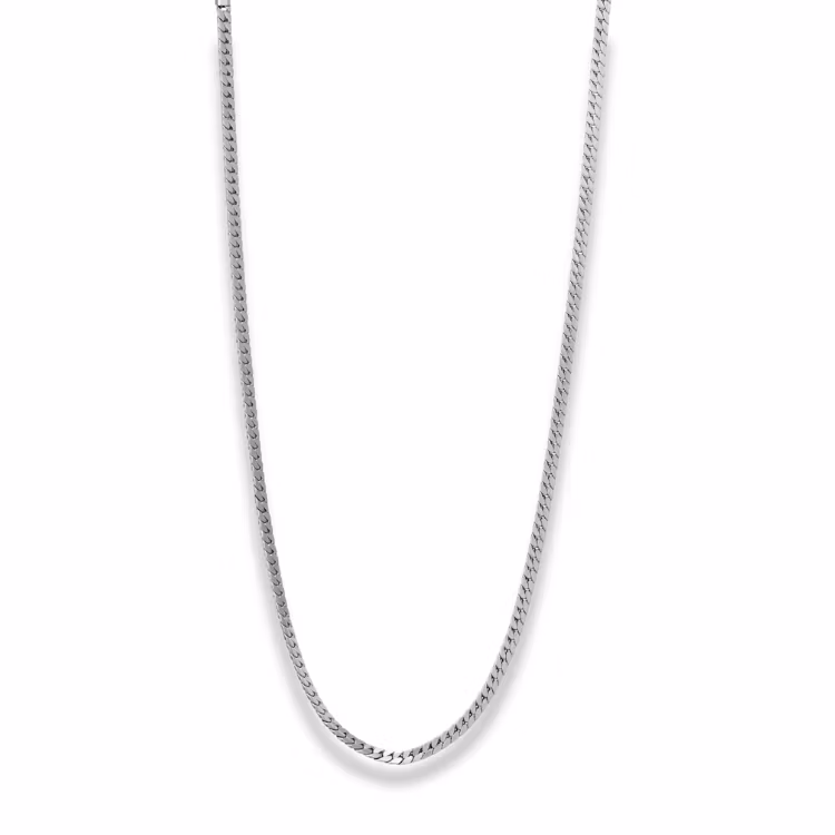 Detta platta, tätt sammanflätade halsbandet är en sofistikerad accessoar med en elegant design. Dess mjuka och smidiga passform gör det bekvämt att bära varje dag, samtidigt som den polerade ytan ger en subtil känsla av lyx. Perfekt för den stilmedvetna mannen som vill höja sin outfit med en classy detalj utan att överglänsa sin personlighet. Ett halsband som balanserar enkelhet och elegans på bästa sätt.