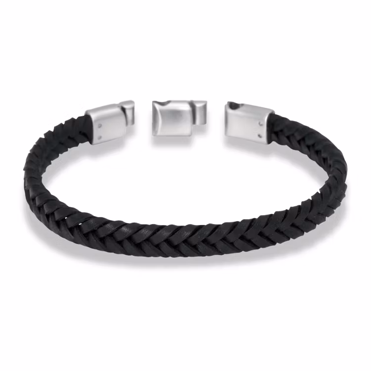 Ett elegant och tidlöst armband i brunt flätat läder som ger en sofistikerad men avslappnad känsla. Den flätade strukturen skapar djup och karaktär, medan det stilrena låset i rostfritt stål ger en modern kontrast och säker passform.