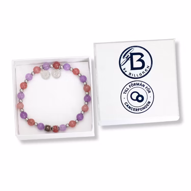 Tillsammans mot cancer. By Billgren har skapat ett unikt beadsarmband som kombinerar tidlös design med symbolik och omtanke. Varje pärla är noggrant utvald och bär på sina egna egenskaper och krafter, vilket gör armbandet till mer än bara ett smycke – det är ett uttryck för engagemang, styrka och hopp.