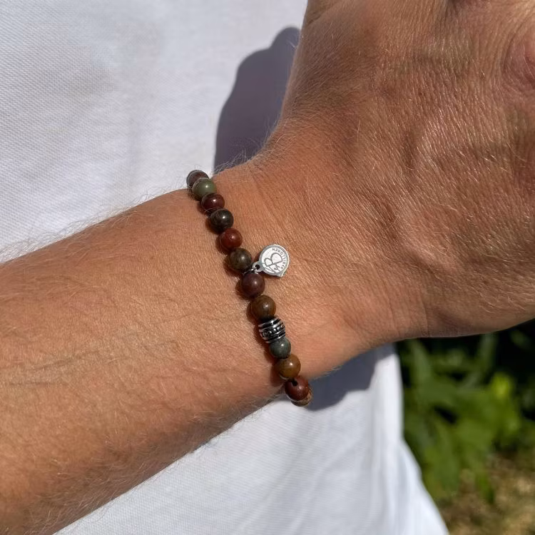 Jaspis är en sten som sägs ge fysisk styrka och vitalitet samt ge inre frid och lugn. Jaspis är en sten som har en långsam verkan och som bör användas under än längre tid. Perfekt för ett armband du kan använda dagligen.