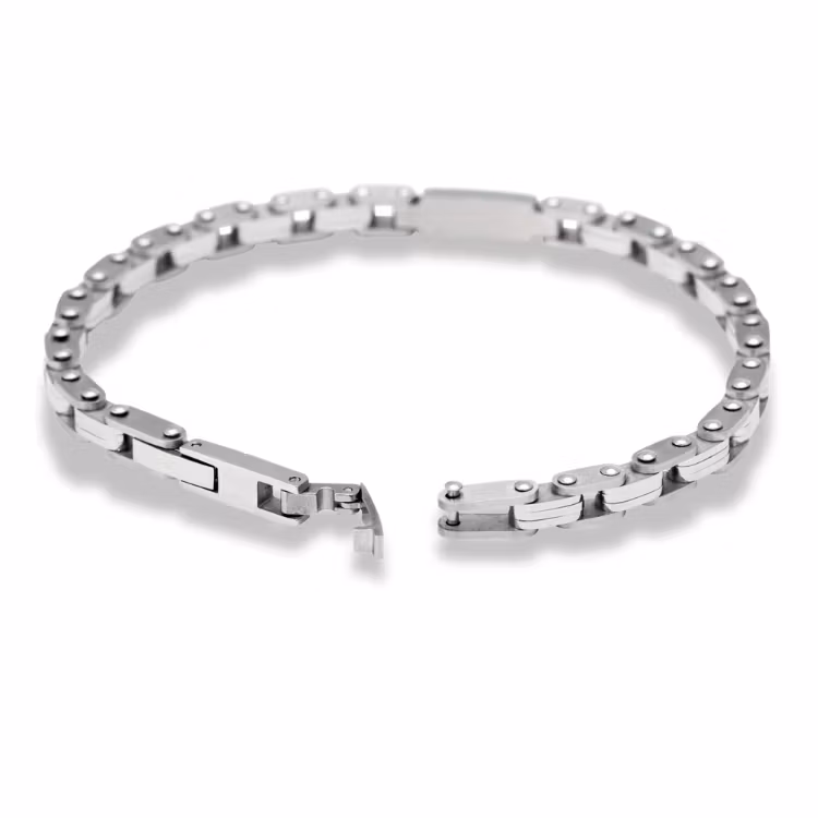 Ett stilfullt armband i rostfritt stål där sammanfogade länkar skapar en sofistikerad design. Den genomarbetade länkstrukturen ger ett tidlöst och minimalistiskt intryck.