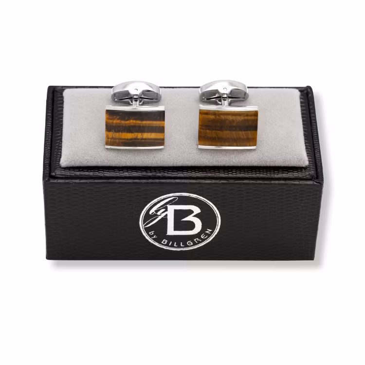 Manschettknappar som förenar naturlig elegans med klassisk design. Den varma, gyllenbruna tigerögastenen ger ett levande djup och ett sofistikerat uttryck.