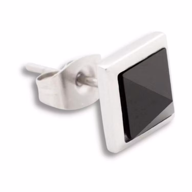 Ett klassiskt örhänge i kirurgiskt stål med en svart kristall av Onyx i mitten. Det perfekta örhänget att använda både till vardags eller fest!