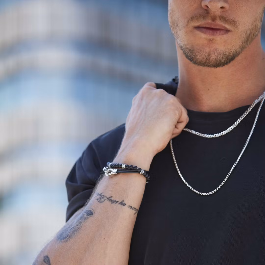 Ett silverhalsband för män tunnare modell som består av små, jämnt fördelade kulor som liknar ärtor i sin form - därav namnet ärtlänk. Kulorna är anslutna till varandra och skapar en flexibel kedja som vilar mjukt runt halsen. Halsbandet är tillverkat i 925 sterling silver som gör smycket extra exklusivt.