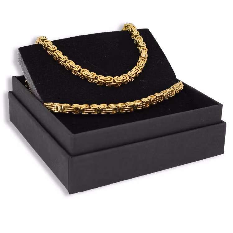 Elegant presentbox med kejsarlänk i rostfritt stål. Tidlös stil och hållbarhet i varje armband och halsband. Perfekt för både vardag och fest.
