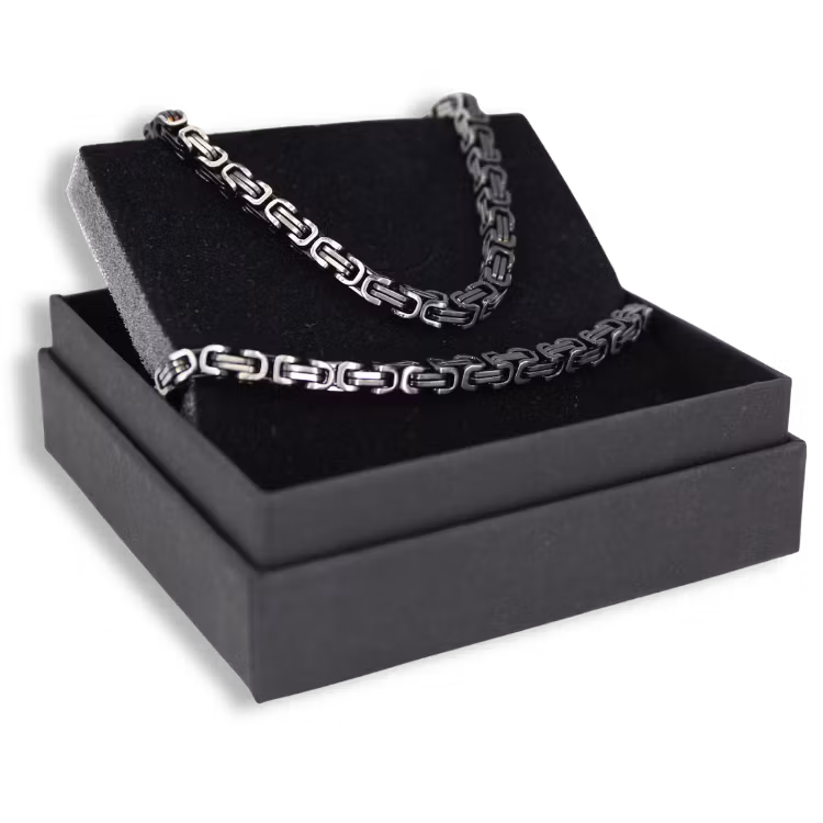 Ge bort en tidlös gåva med ett matchande armband och halsband i samma kedja och färg. Smyckena har en klassisk kejsarlänk i gunmetal, en stilren design som utstrålar både styrka och elegans och som passar lika bra till vardags som till fest.